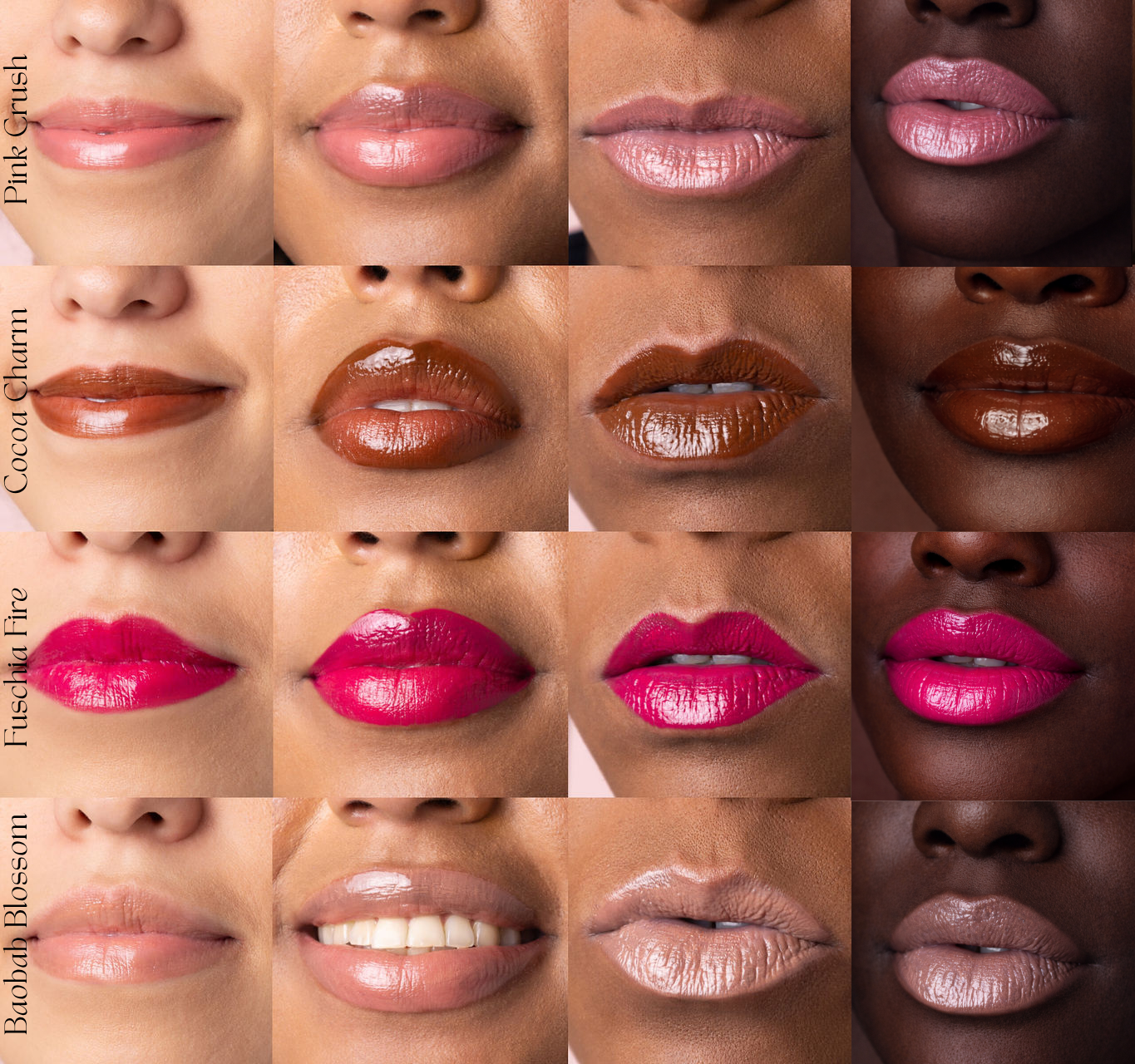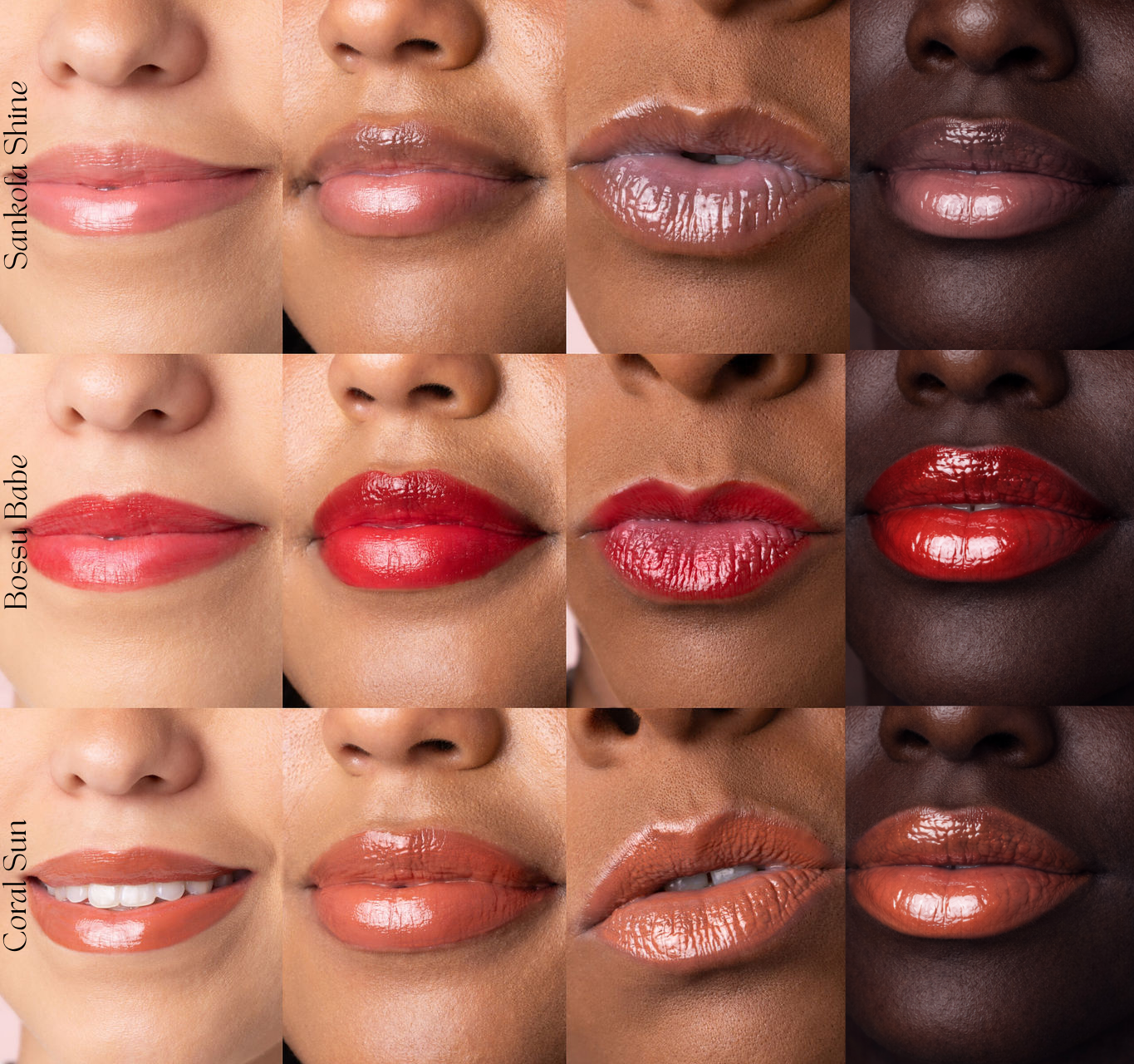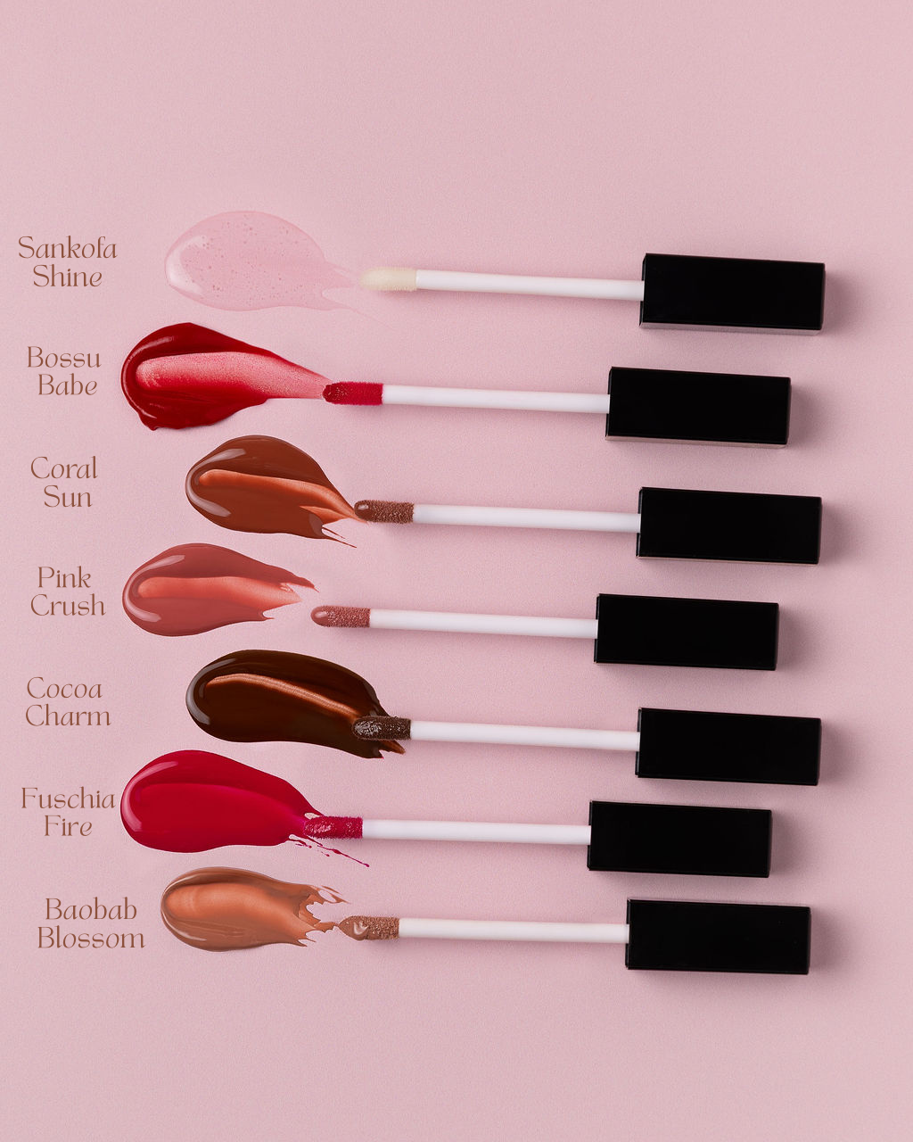 Ya sea que se usen solos para un brillo luminoso o sobre el labial para mayor dimensión, estos brillos labiales aportan elegancia y luminosidad a cualquier look. Desde tonos neutros suaves hasta colores vibrantes e intensos, cada tono se inspira en la vitalidad y la gracia de la belleza africana: segura, radiante y sencillamente divina.